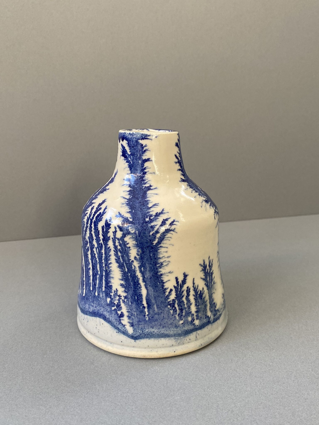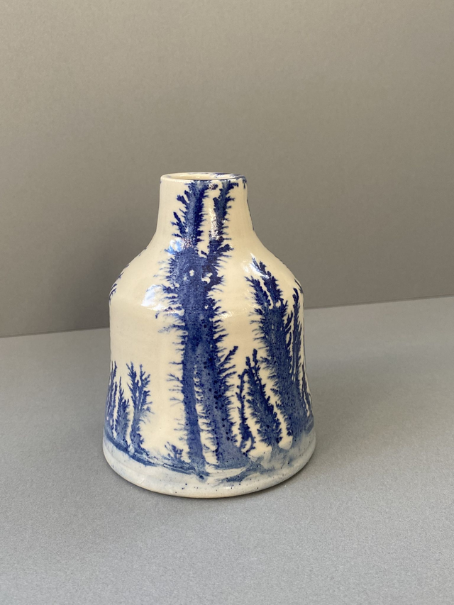 Add a touch of elegance to your space with this handmade blue ceramic bud vase. Measuring 12cm in height and 9.5cm in width, this small flower pot is perfect for displaying single stems or delicate floral arrangements. Crafted from high-quality pottery, its smooth blue glaze and minimalist design make it a versatile tabletop vase that complements any décor style. Ideal for decorating shelves, desks, or window sills, this decorative pottery piece combines artistry and functionality. Whether for everyday use or as a charming gift, this compact ceramic vase adds a subtle pop of color and sophistication to any room.